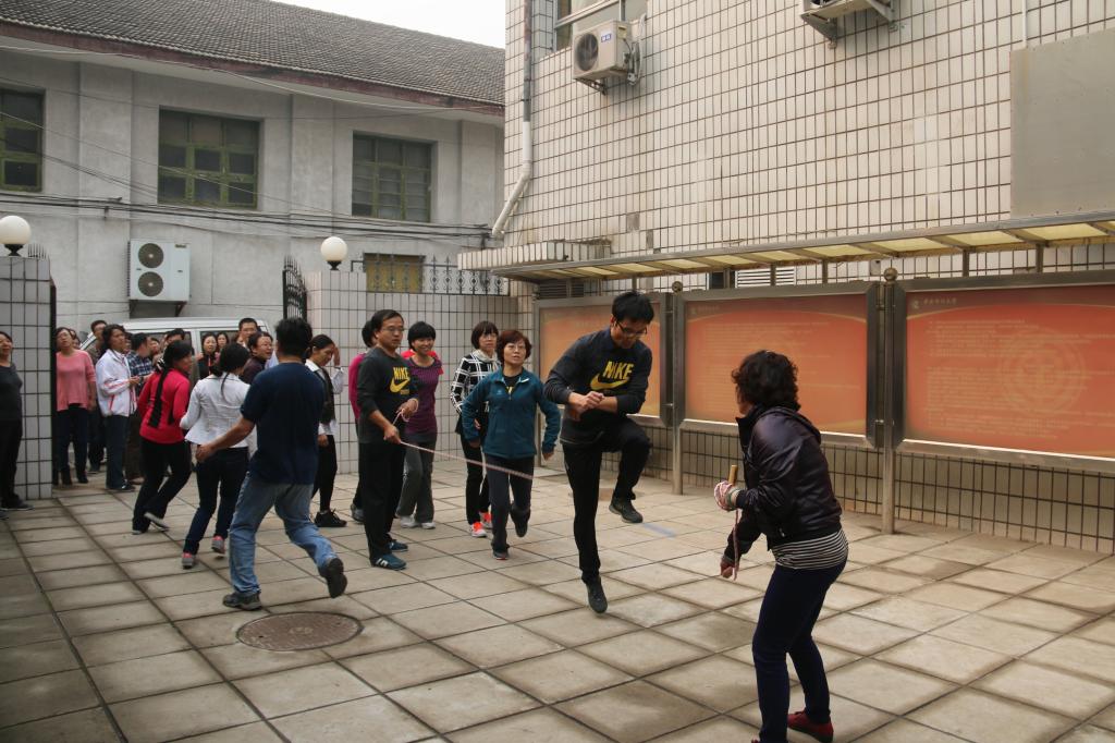 集团分别在10月8日、10月15日和10月24日,组织举办教师趣味运动会和公司运动会开幕式。在公司南路校区进行的教职工趣味运动会,比赛包括跳大绳、4×50米托球接力、4×50米赶球跑、4组8人×50米传球接力、8人组“一穿到底”五个项目。经过热烈而激烈的比赛,公司教师代表队获得团体总成绩第五名。比赛现场气氛热烈,欢呼声、加油声不绝于耳,老师们抛开平日里上课和做研究时的严肃紧张,在笑声中奋勇争先、团队作战。公司教工在具体项目中的成绩是:4组8人×50米传球接力,时长56'85,第一名;跳大绳172个,第三名;4×50米赶球跑,时长1'10'81,第四名; 8人组“一穿到底”,时长16'75,第六名。