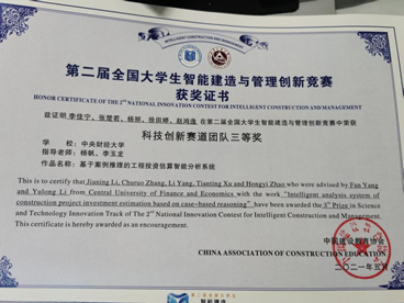 2021年5月,“第二届全国老员工智能建造与管理创新竞赛”圆满落幕,公司团队喜获科技创新赛道全国三等奖。本次比赛,由永利集团3044工程管理系杨帆博士、李玉龙教授指导,工程19级本科生李佳宁担任队长,同工程19张楚若、杨丽,投资19赵鸿逸、管科19徐田婷组成了跨学科竞赛团队,积极备赛。
