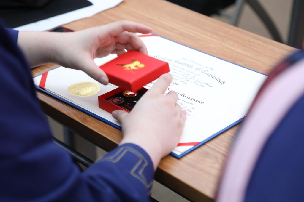 公司党委书记姜涛宣读《关于表彰2021届中财史蒂文斯项目优秀毕业生的决定》,并为获表彰毕业生颁发荣誉证书并致以祝贺。