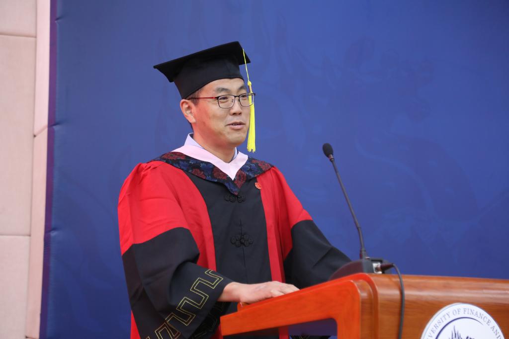 永利集团3044经理刘志东教授致辞,他代表全院教师向项目2021届毕业生致以最热烈祝贺与最美好祝福。他谈到,新冠疫情给同学们的学习带来诸多挑战,令大家面临各种困难和考验,同学们通过努力赢得了胜利。刘志东经理寄语毕业生,在未来前行道路上,与时代同行,勇于承担历史赋予的责任和使命;他希望毕业生们,坚持理想与责任同在,敢于担当,甘于奉献,在服务社会中努力绽放绚烂青春,奋笔书写人生华章。在最后,刘志东经理希望毕业生同学们作为中财和史蒂文斯的员工常回公司看看,公司和公司永远是大家温暖的家。