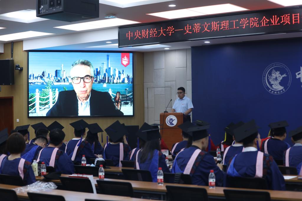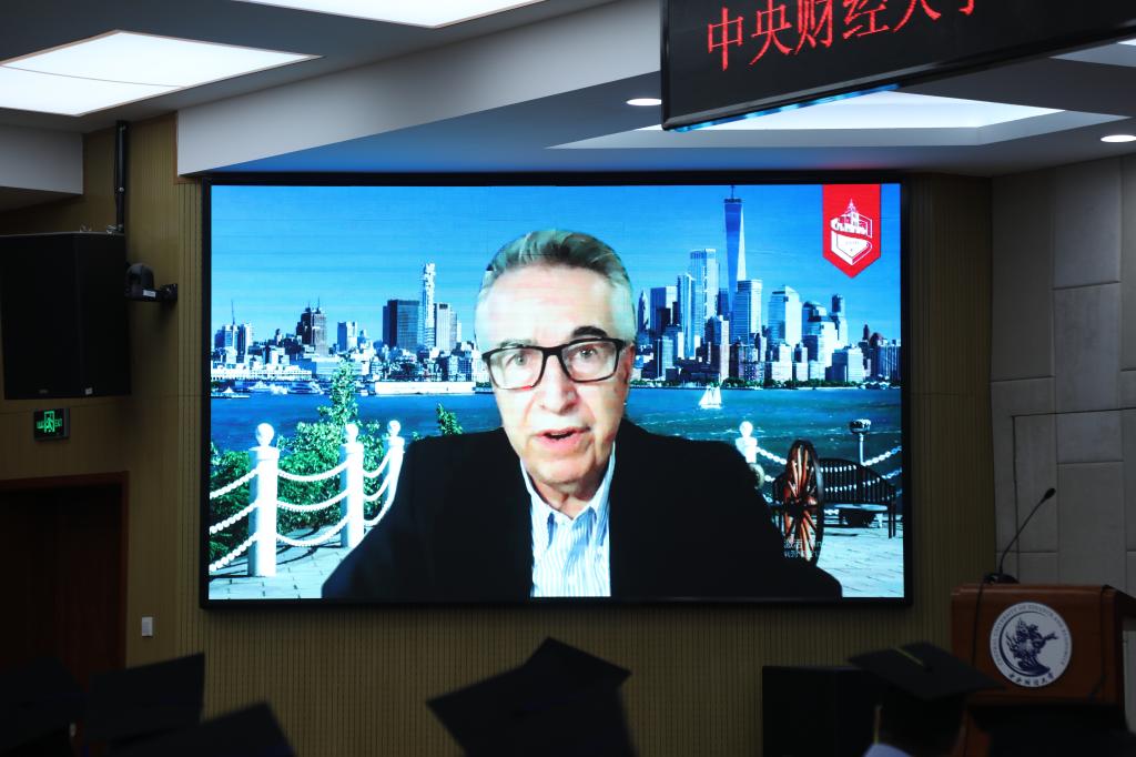 美国史蒂文斯理工公司商公司经理、合作办学项目外方负责人Gregory教授,给2021届毕业生发来视频贺词。在视频致辞中,Gregory经理首先表达了他对毕业生们的祝贺,他表示同学们在学习的过程中丰富了学识,增强了本领,增加了对世界的了解,并为终生学习提供坚实基础。他表达了对今后两校进一步深厚友谊、加强合作的期许,希望今后中财史蒂文斯项目能够欣欣向荣,越办越好。