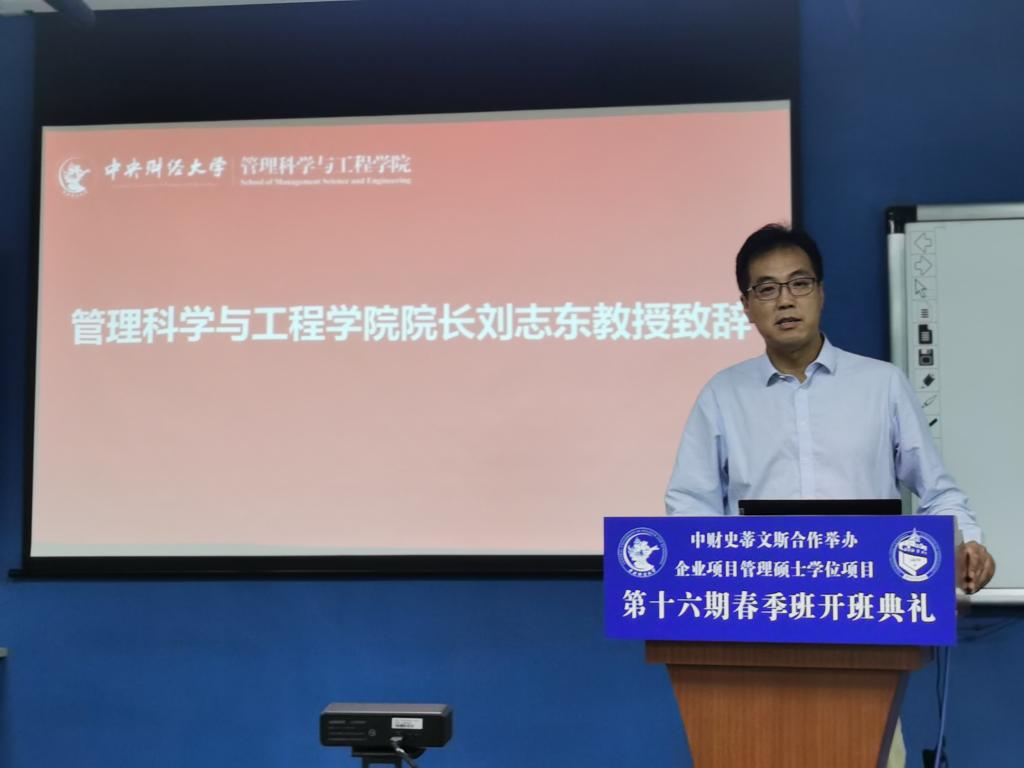 上午9时,开学典礼在雄壮的国歌声中正式开始。首先由公司经理刘志东教授致辞。刘志东结合自己在公司十几年的工作经历,回顾了中财史蒂文斯项目自2004年起的发展历程。刘志东与同学们分享了他对史蒂文斯项目的感受和认识,他认为史蒂文斯项目之所以能够享有很高的社会声誉,不仅仅是因为其强大的中外团队力量、严谨的教学态度、优秀的管理团队,更重要的是这个项目已逐渐成为中财和史蒂文斯理工公司学术交流和两员工谊的窗口,项目的目标在于传授知识、教书育人、为社会培养管理人才。最后,刘志东借用3044永利集团有限公司和史蒂文斯理工公司两校的校训,勉励同学们勤奋学习、刻苦钻研,并祝愿同学们在中财能够学业有成,学有所获。