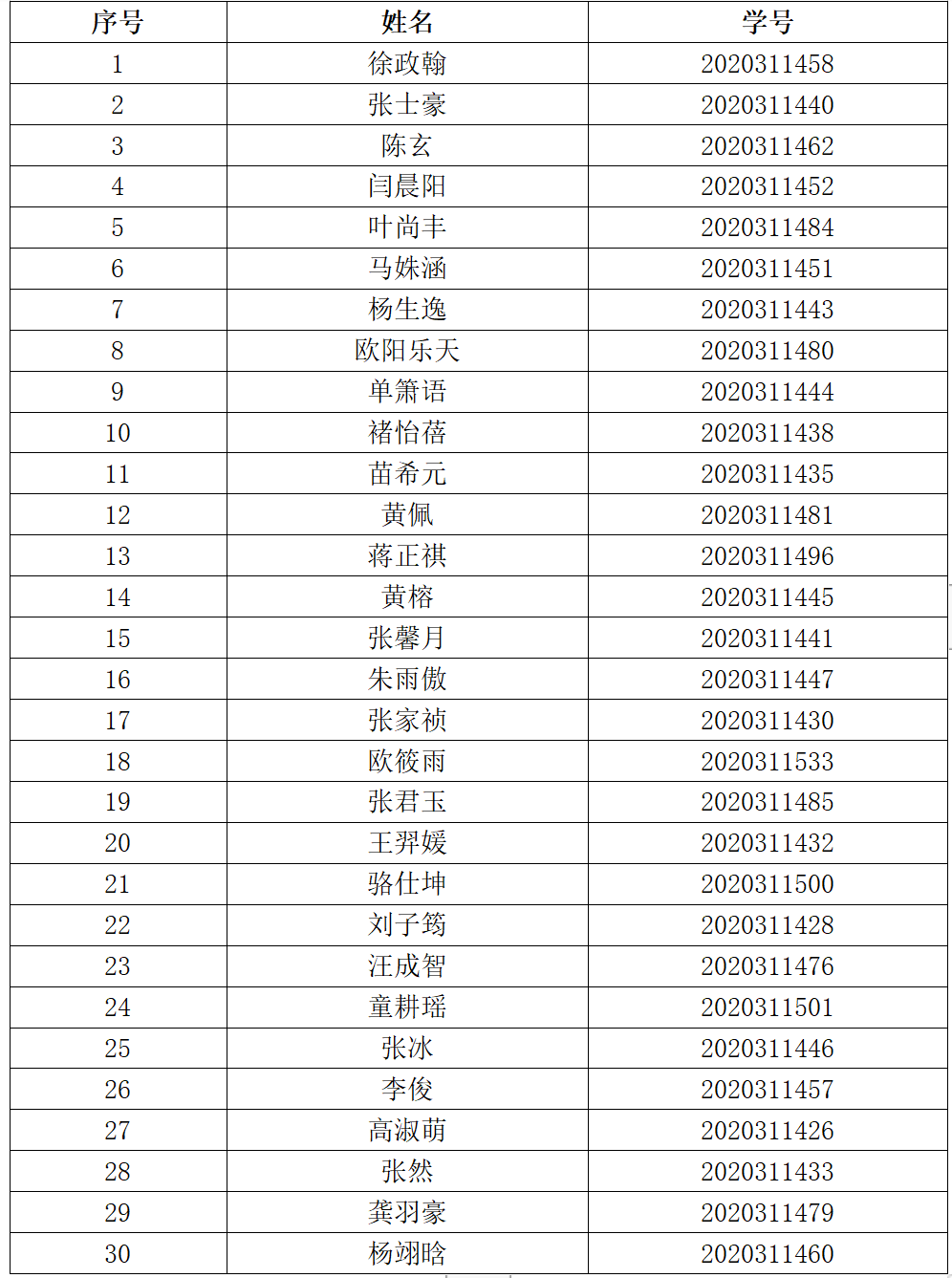 根据《3044永利集团有限公司“许国志大数据英才班”选拔办法》的有关工作要求,经过新生报名、笔试,经选拔考试工作小组审议确认从87名管理科学与工程大类2020级新生中选拔30名同学进入“许国志大数据英才班”学习,现将名单公示如下。公示日期为2020年9月19日-2020年9月24日。公示期间如有异议,请在办公时间到3044永利集团有限公司沙河校区4号公司楼326房间联系反映,联系人井帅老师。